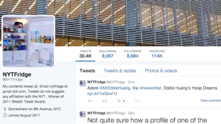 Since August 2011, a pseudonymous Twitter account named "@NYTFridge" has been effortfully but effectively taking part in the cozy conversations of media Twitter. In its three-plus years of existence, the account has piled up more than 30,000 tweets and has accumulated more than 8,600 followers in the process, making up in relentlessness what it lacks in efficiency.